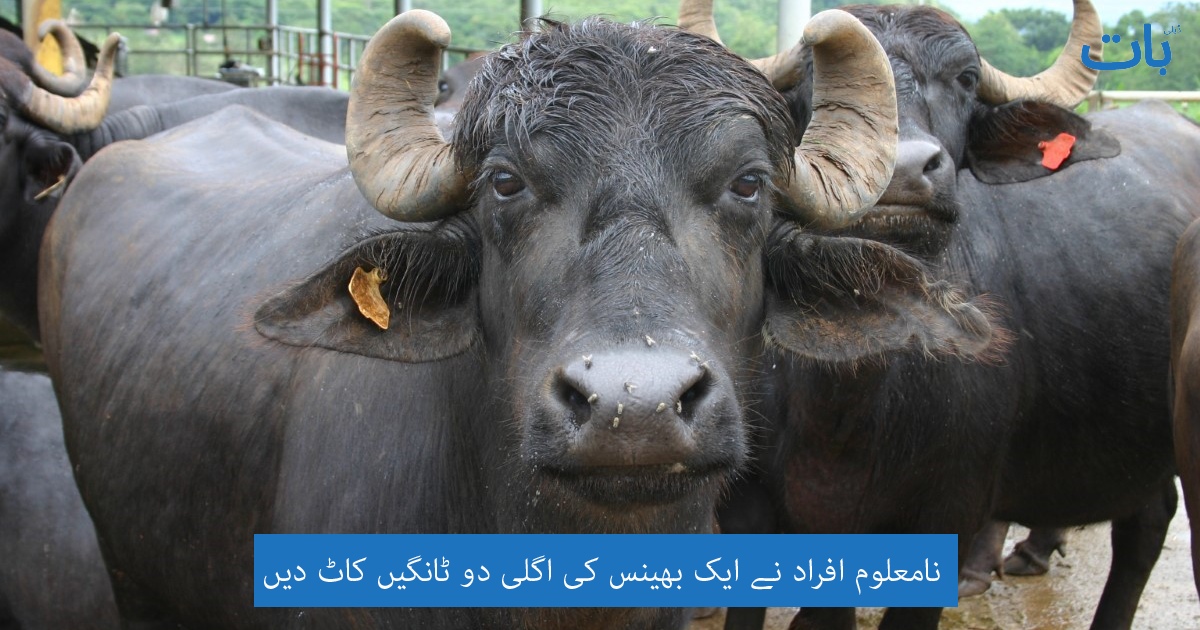 نامعلوم افراد نے ایک بھینس کی اگلی دو ٹانگیں کاٹ دیں