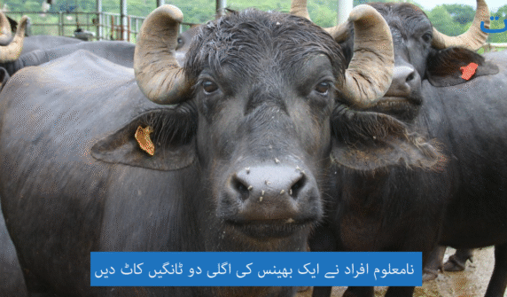 نامعلوم افراد نے ایک بھینس کی اگلی دو ٹانگیں کاٹ دیں