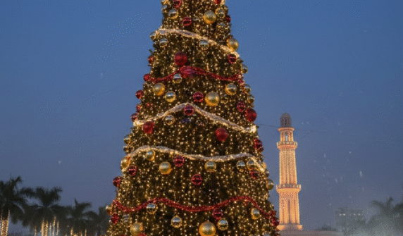 لاہور: لبرٹی چوک پر 42 فٹ بلند کرسمس ٹری نصب، شہری خوشیوں میں شریک