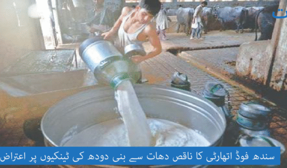 سندھ فوڈ اتھارٹی کا ناقص دھات سے بنی دودھ کی ٹینکیوں پر اعتراض