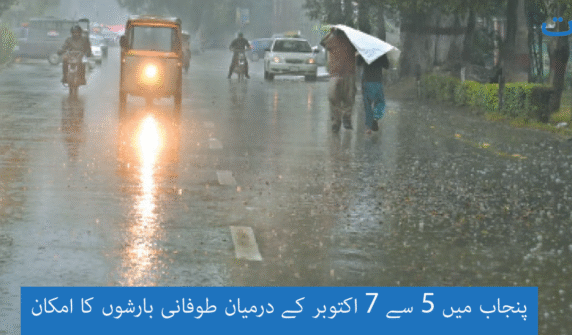 پنجاب میں 5 سے 7 اکتوبر کے درمیان طوفانی بارشوں کا امکان