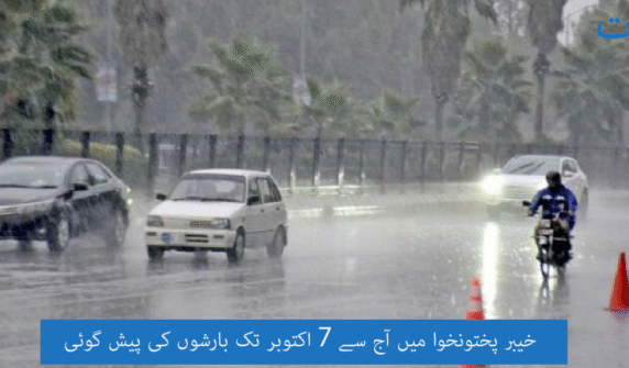 خیبر پختونخوا میں آج سے 7 اکتوبر تک بارشوں کی پیش گوئی