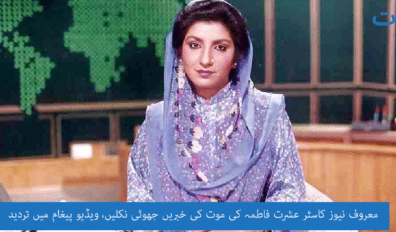 معروف نیوز کاسٹر عشرت فاطمہ کی موت کی خبریں جھوٹی نکلیں، ویڈیو پیغام میں تردید