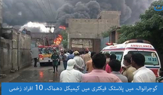 گوجرانوالہ میں پلاسٹک فیکٹری میں کیمیکل دھماکہ، 10 افراد زخمی