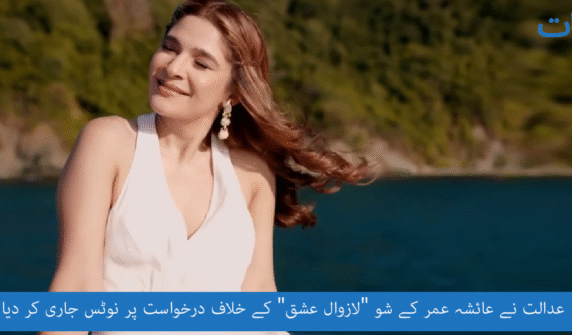 عدالت نے عائشہ عمر کے شو “لازوال عشق” کے خلاف درخواست پر نوٹس جاری کر دیا