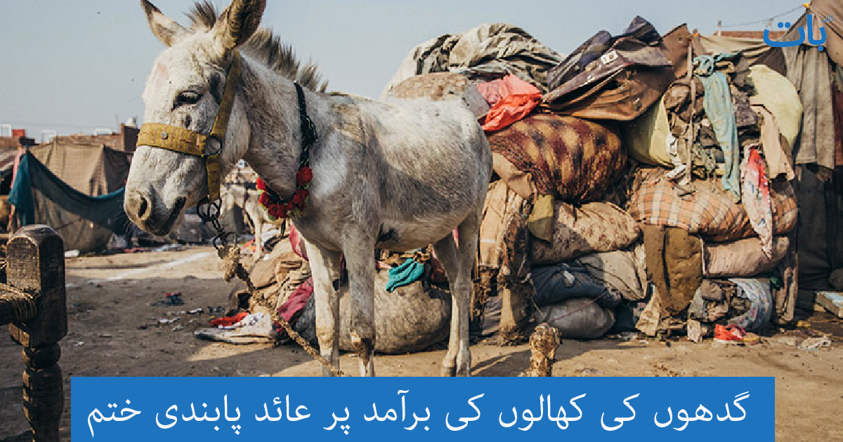 حکومتِ پاکستان نے گدھوں کی کھالوں کی برآمد پر عائد پابندی ختم کر دی ہے، جس کے بعد اس متعلقہ تجارت کو دوبارہ فعال ہونے کی اجازت مل گئی ہے۔ اس فیصلے کے حامی اس کو مقامی صنعت اور روزگار کے لیے فائدہ مند قرار دے رہے ہیں جبکہ ماحولیاتی اور حقوقِ حیوانات کے کارکنان نے تشویش کا اظہار کیا ہے اور کہا ہے کہ اس کے نفاذ کے ساتھ سخت نگرانی، جانوروں کے حقوق کے ضوابط، اور اخلاقی طریقۂ کار کو لازمی قرار دیا جائے۔ حکومتی نوٹیفکیشن میں پابندی ختم کرنے کی وجہ، عملدرآمد کی تاریخ اور اس تجارت پر لاگو کیے جانے والے قواعد و ضوابط واضح کیے جائیں گے؛ عوام اور صنعت سے کہا گیا ہے کہ وہ حتمی معلومات کے لیے متعلقہ محکموں کی سرکاری ہدایات ملاحظہ کریں۔