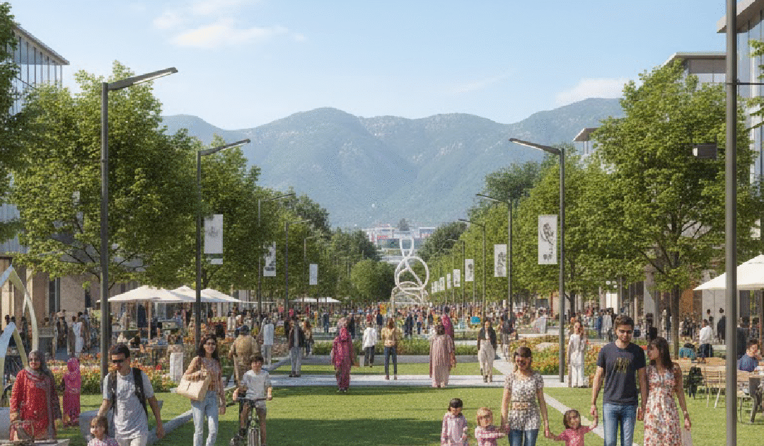 اسلام آباد میں بلو ایریا میں پہلی بار ایک گاڑیوں سے پاک، صرف پیدل چلنے والوں کے لیے زون قائم کیا جا رہا ہے۔ یہ زون تقریباً 800 میٹر طویل ہوگا اور Jinnah Avenue کے کنارے، سویور فوڈز سے خیبر پلازہ تک پھیلا ہوگا۔ اس منصوبے کا بجٹ تقریباً 240,000,000 روپے رکھا گیا ہے اور اس میں پیدل چلنے والوں کے لیے محفوظ راستے، آرام دہ بنچیں، فوڈ آؤٹ لیٹس، ڈیجیٹل اسکرینز اور کچرا دان شامل کیے گئے ہیں۔ گاڑیاں اس زون میں داخل نہیں ہوں گی، لیکن قریب ہی ملٹی اسٹوری پارکنگ پلازہ میں تقریباً 950 گاڑیوں کی گنجائش ہوگی جبکہ خیبر پلازہ کے سامنے مزید 150 پارکنگ مقامات مختص کیے گئے ہیں۔ معمر افراد اور بچوں کی سہولت کے لیے الیکٹرک کارٹ سروس بھی فراہم کی جائے گی۔ اس منصوبے کا مقصد اسلام آباد کو زیادہ پیدل چلنے کے موافق بنانا، ٹریفک کا دباؤ کم کرنا، ہوا کی صفائی بہتر کرنا اور تجارتی سرگرمیوں میں اضافہ کرنا ہے۔ CDA کے مطابق پہلے مرحلے کا کام پہلے ہی شروع ہو چکا ہے اور تقریباً 45 دن میں مکمل ہونے کی توقع ہے، اور کامیابی کی صورت میں دیگر مقامات جیسے Jinnah Super Market میں بھی ایسے زونز قائم کیے جائیں گے۔