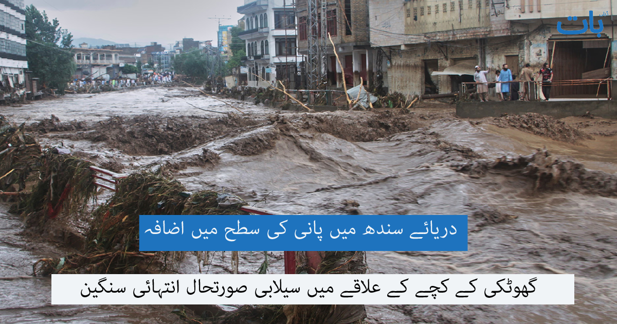 دریائے سندھ میں پانی کی سطح میں مسلسل اضافے کے باعث کچے کے کئی دیہات زیرِ آب آ چکے ہیں۔گھوٹکی کے کچے کے علاقے میں سیلابی صورتحال انتہائی سنگین ہو چکی ہے۔کھڑی فصلیں تباہ ہو گئی ہیں اور مویشیوں کے لیے چارے کی شدید قلت پیدا ہو گئی ہے۔ ہزاروں افراد محفوظ مقامات کی طرف نقل مکانی پر مجبور ہو چکے ہیں۔ قادِرپور گیس فیلڈ بھی متاثر ہوئی ہے جہاں سیلابی پانی داخل ہونے کے بعد متعدد گیس کنووں کی پیداوار روک دی گئی ہے۔ حکومت سندھ نے ہائی الرٹ جاری کرتے ہوئے امدادی کارروائیاں تیز کر دی ہیں۔ حفاظتی بندوں کو مضبوط کیا جا رہا ہے اور متاثرہ علاقوں میں طبی سہولیات فراہم کی جا رہی ہیں۔ تاہم، دریائے سندھ کے بندوں پر پانی کا دباؤ بدستور بڑھ رہا ہے جس کے باعث مزید علاقوں کے زیرِ آب آنے کا خطرہ موجود ہے۔ مقامی انتظامیہ نے عوام سے اپیل کی ہے کہ وہ احتیاطی تدابیر اختیار کریں اور ممکنہ خطرے کے پیشِ نظر محفوظ مقامات پر منتقل ہو جائیں