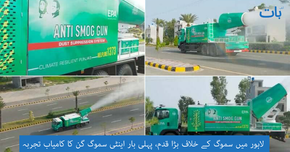 پنجاب حکومت نے لاہور میں فضائی آلودگی کے بڑھتے ہوئے مسئلے سے نمٹنے کے لیے پہلی بار “اینٹی سموگ گن” آپریشن کا آغاز کر دیا ہے۔ یہ جدید تکنیکی اقدام لاہور کے علاقے کاہنہ میں کیا گیا، جہاں خصوصی گاڑیوں پر نصب اینٹی سموگ گنز کے ذریعے پانی کی باریک دھند فضا میں چھوڑی گئی، جس کا مقصد ہوا میں معلق مضر صحت ذرات کو زمین پر بٹھانا تھا۔ حکام کے مطابق اس آپریشن کے فوراً بعد علاقے کا ایئر کوالٹی انڈیکس (AQI) 667 سے کم ہو کر 170 تک آ گیا، یعنی تقریباً 70 فیصد بہتری ریکارڈ کی گئی۔