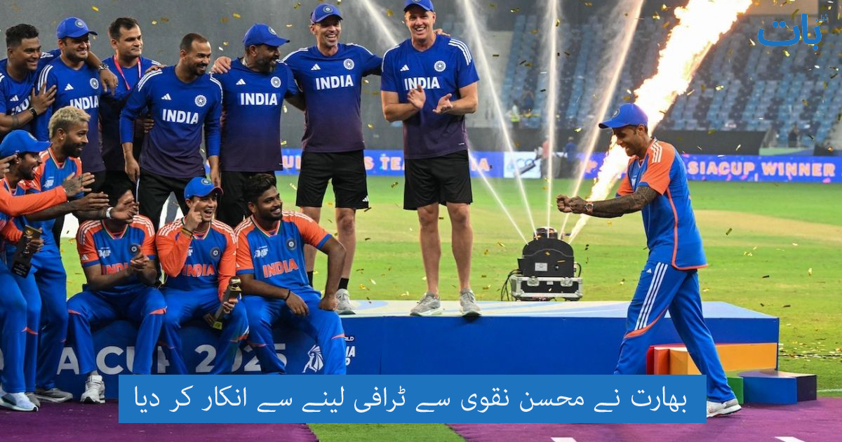 بھارت کی کرکٹ ٹیم نے ایشیا کپ 2025 جیتنے کے بعد ٹرافی تقریب میں ایک غیر معمولی اور متنازع رویہ اختیار کیا۔ رپورٹس کے مطابق، بھارتی کھلاڑیوں نے پاکستان کرکٹ بورڈ کے چیئرمین اور ایشین کرکٹ کونسل (ACC) کے موجودہ صدر، محسن نقوی سے ٹرافی لینے سے انکار کر دیا۔ عام طور پر روایتی طور پر جیتنے والی ٹیم کے کپتان کو ٹرافی ACC کے صدر یا میزبان بورڈ کے اعلیٰ عہدیدار سے دی جاتی ہے، مگر اس بار بھارت کی ٹیم نے اس روایت کو توڑ دیا۔ ذرائع کے مطابق، بھارت کے کرکٹ بورڈ (BCCI) نے پہلے ہی اس فیصلے پر اتفاق کیا تھا کہ وہ محسن نقوی کے ساتھ اسٹیج پر کوئی براہِ راست تعلق نہیں رکھے گا، جس کی بنیادی وجہ پاکستان اور بھارت کے درمیان جاری سیاسی کشیدگی اور محسن نقوی کا پاکستان کے نمائندے کے طور پر کردار ہے۔